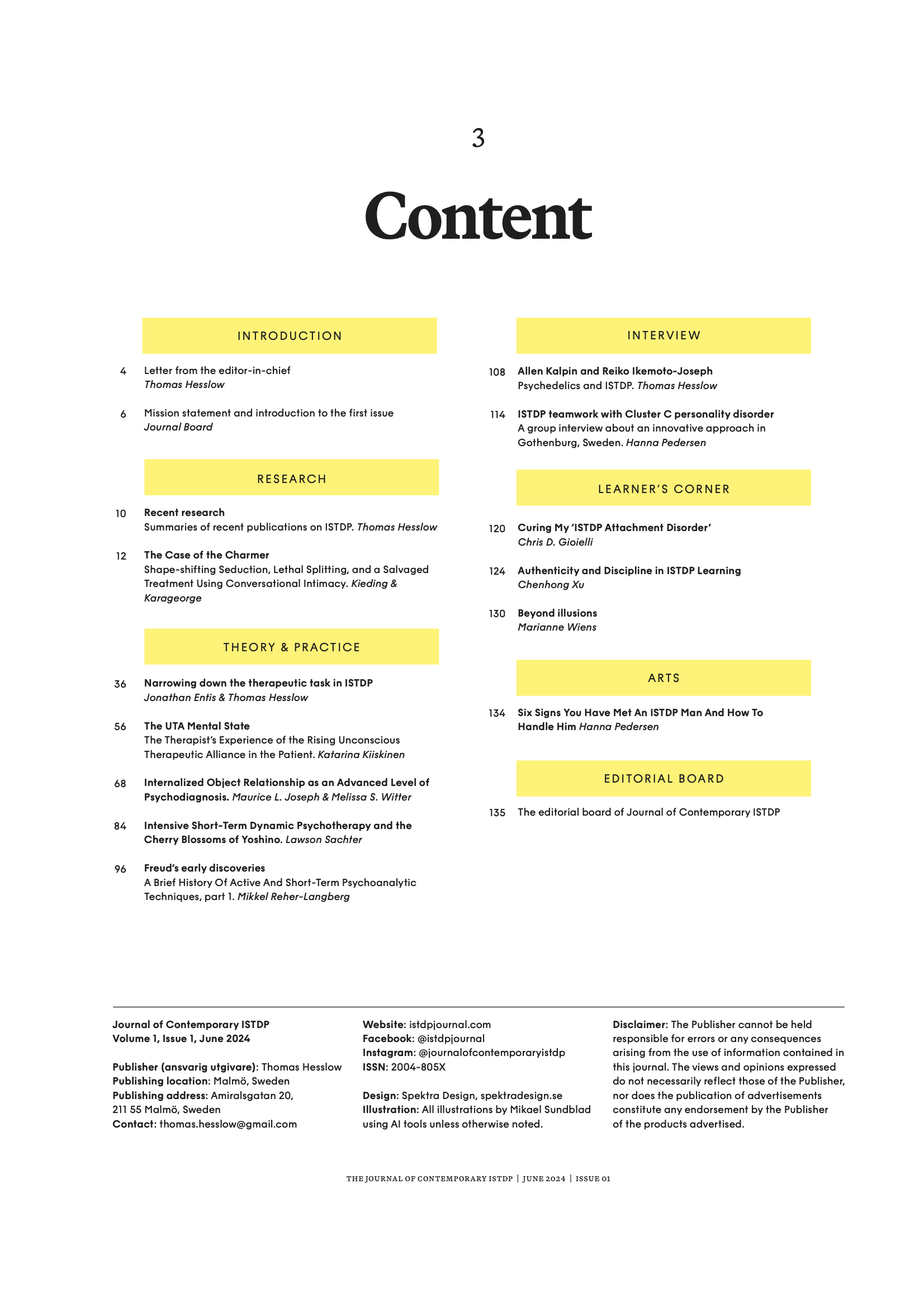 Journal of Contemporary ISTDP är ett ISTDP-magasin skapad av ett internationellt team. Tidskriften blandar peer-reviewgranskat akademiskt och icke-akademiskt innehåll, och publicerar empiriska studier, psykoanalytisk teori, recensioner, debattartiklar, fallstudier, korta personliga reflektioner och möjligen lite konst.
